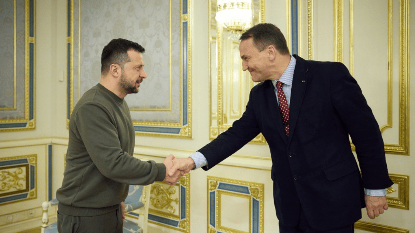Президент України Володимир Зеленський зустрівся з нещодавно призначеним міністром закордонних справ Польщі Радославом Сікорським. Вони обговорили подальшу взаємодію в оборонній сфері та питання створення спільних виробництв.